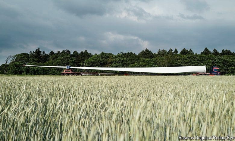 Tapi ada hambatan. Bilah-bilah terpanjang saat ini sudah terlalu besar untuk dikirim ke ladang angin di daratan. Kapal-kapal tersebut hanya dapat dibawa dengan kapal ke lokasi lepas pantai, yang biaya pembangunannya jauh lebih tinggi.