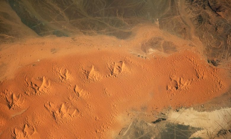Gambar mencolok diambil dari Stasiun Luar Angkasa Internasional mengungkap bukit pasir Erg Chebbi di tenggara Maroko, bagian dari Gurun Sahara yang luas.